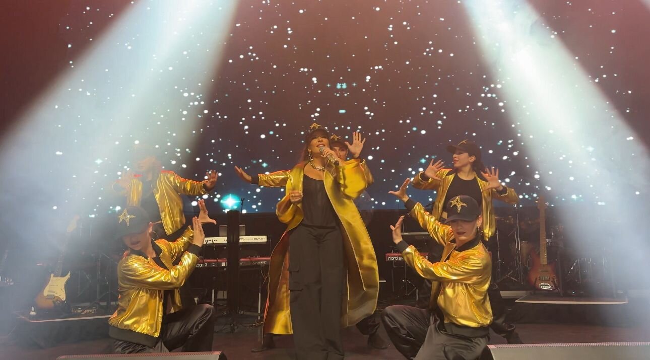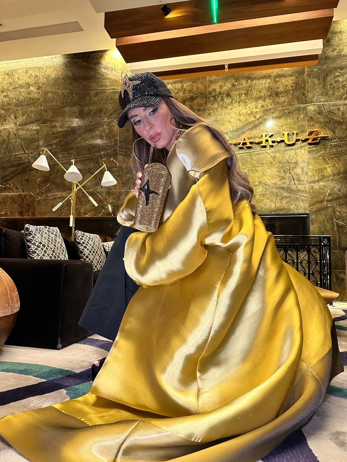 XEBERTV.AZxəbər verir ki, bütün çıxışları üçün xüsusi hazırlaşan pop ulduz bu dəfə baş aksesuarı ilə seçilib. Səhnəmizin əfsanəsi rəqqasları ilə birlikdə R&B tərzində olan geyimdə səhnəyə çıxıb. Xüsusi diqqətçəkən məqam isə sənətçinin şəxsi, yeni hazırlanan loqosunun yer aldığı papaqların görünməsi idi.