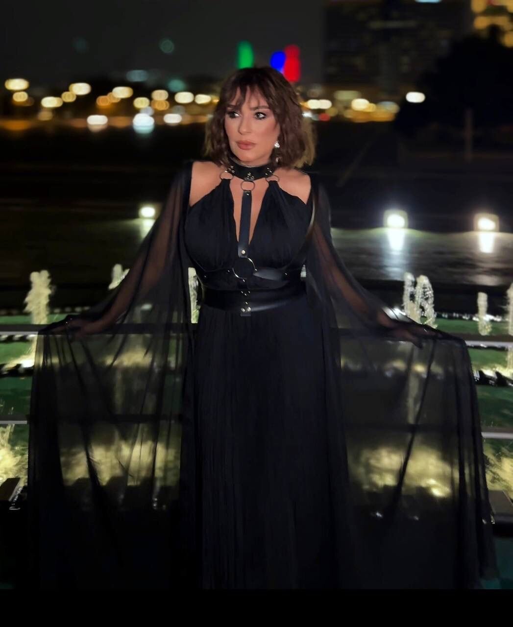 Geyimin müəllifi yerli markamız olan “Dentel Couture” məxsusdur. Xalq artistinin üzərindəki aksesuar isə Neijan Malik imzası daşıyır.